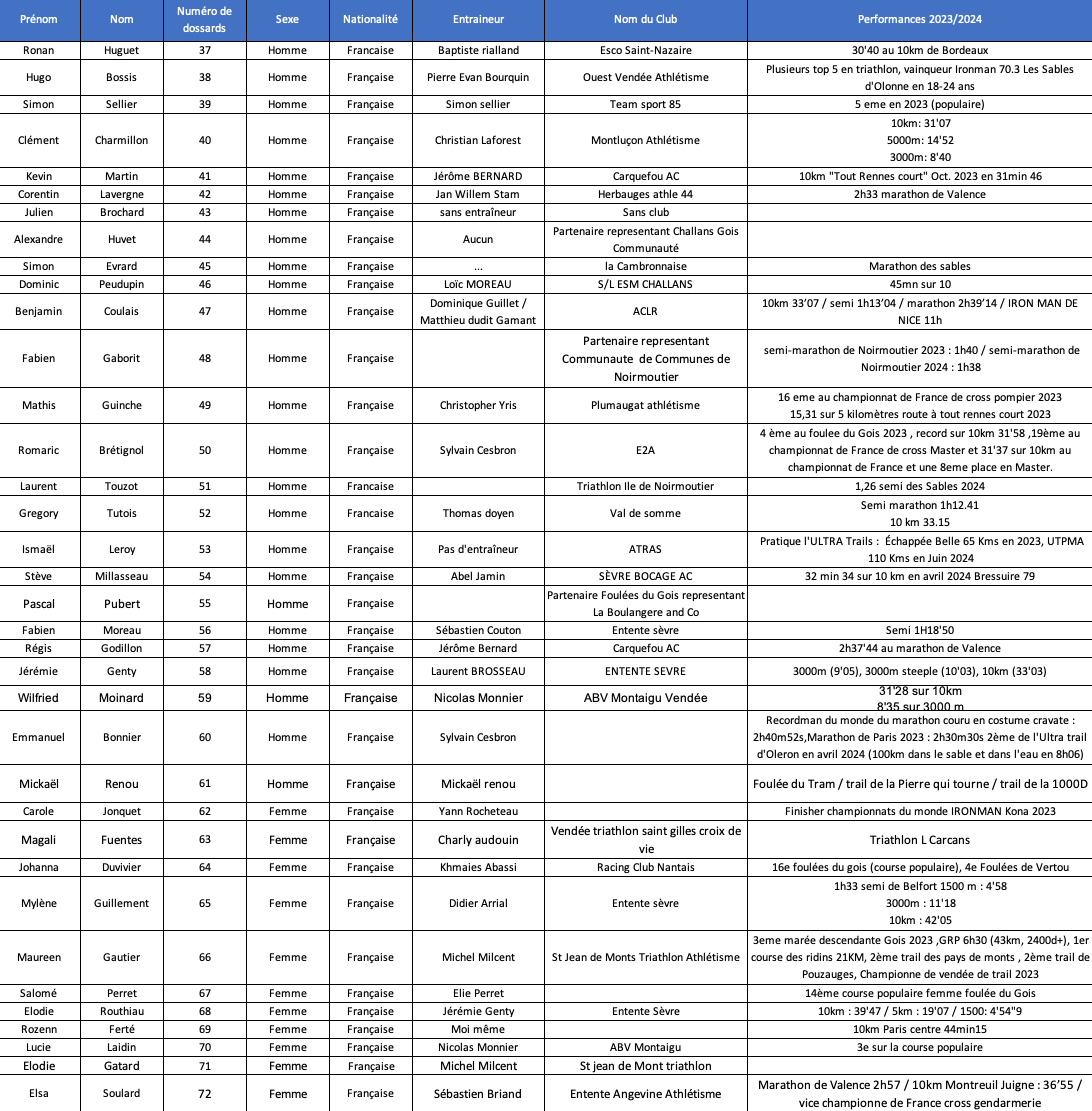 Performances des athlètes sélectionnés pour la Course à Marée descendante 2024